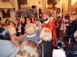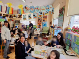 զետեղում Նէա Զմիռնիի յուշակոթողին առջեւ