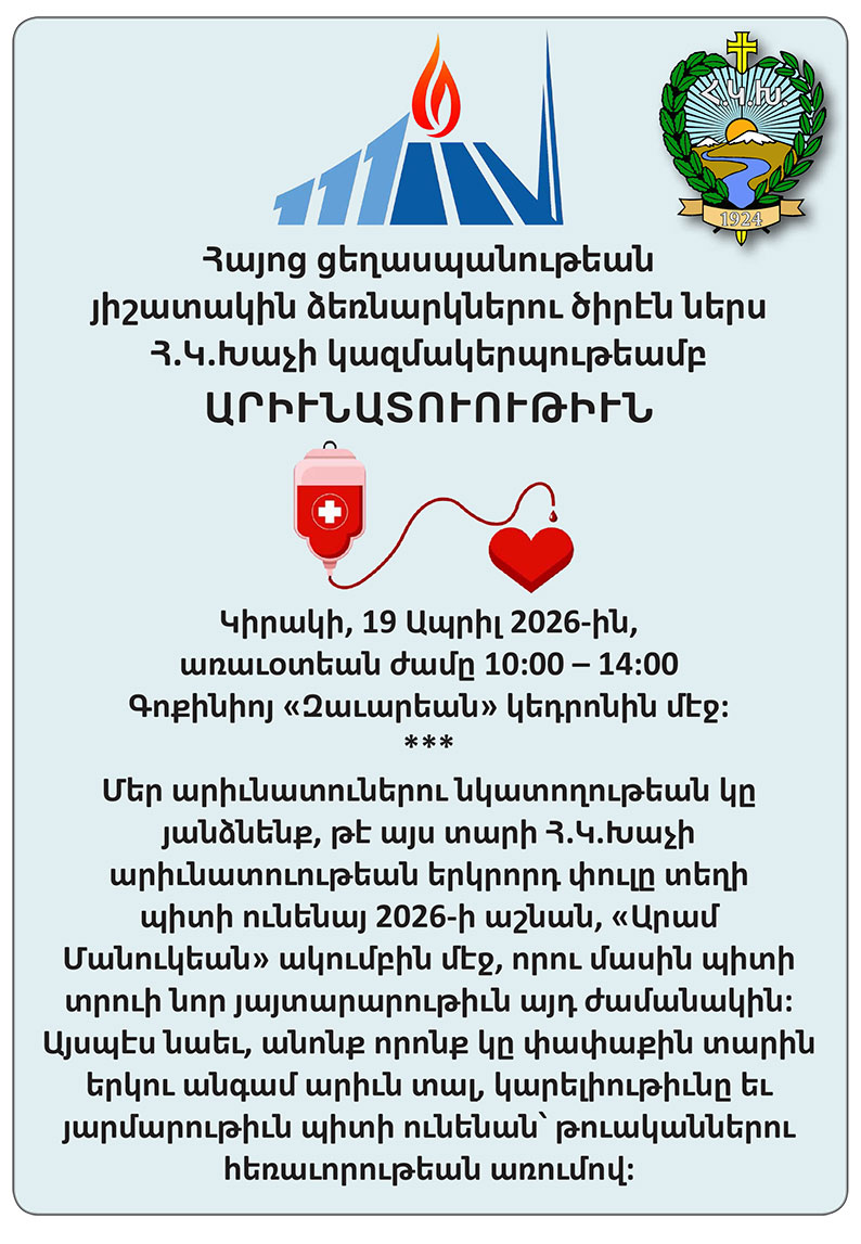 Հ.Կ.Խաչի կազմակերպութեամբ — Արիւնատուութիւն