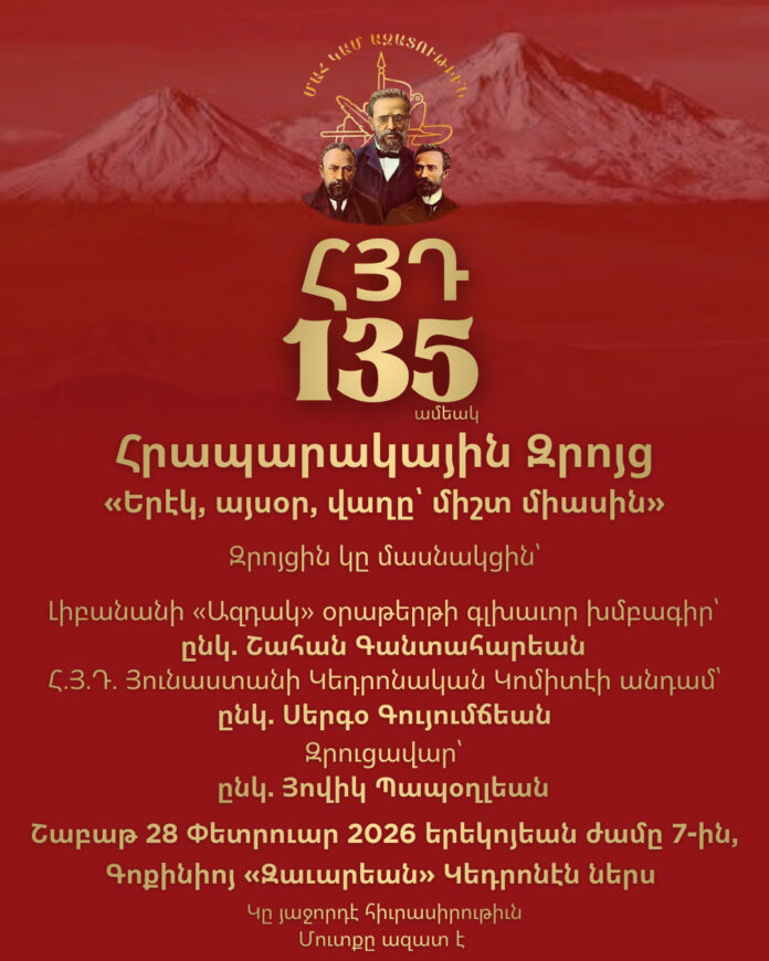 ԳԼԽԱՒՈՐ ԷՋ ԳԱՂՈՒԹԱՅԻՆ Գաղութային կեանք Հ.Յ.Դ. 135-ամեակ Աթէնքի մէջ ԳԱՂՈՒԹԱՅԻՆԳաղութային կեանքՅայտարարութիւններ Հ.Յ.Դ. 135-ամեակ Աթէնքի մէջ 11 Փետրվար 2026 51 0 ՅԱՐԱԿԻՑ ՅՕԴՈՒԱԾՆԵՐԱՒԵԼԻ ՇԱՏ ՀԵՂԻՆԱԿԻ Գաղութային կեանք Բաց դռներու օր. տուն եւ դպրոց՝ ձեռք-ձեռքի Գաղութային կեանք Յունաստանի Հ.Մ.Ը.Մ.-ի գործունէութիւնը 2026-ի Մարտ ամսուան ընթացքին (Նկարներ) Գաղութային կեանք Աւագ Շաբթուան եւ Սուրբ Զատկուան արարողութիւնները Թեսաղոնիկէի մէջ - Advertisement -Վերջին գրառումներ Սերգօ Ճանիկեան 17 Ապրիլ 2026 Սերգօ Ճանիկեան (Վկայութիւն մը) 17 Ապրիլ 2026 Բաց դռներու օր. տուն եւ դպրոց՝ ձեռք-ձեռքի 17 Ապրիլ 2026 Յունաստանի Հ.Մ.Ը.Մ.-ի գործունէութիւնը 2026-ի Մարտ ամսուան ընթացքին (Նկարներ) 17 Ապրիլ 2026 Աւագ Շաբթուան եւ Սուրբ Զատկուան արարողութիւնները Թեսաղոնիկէի մէջ 17 Ապրիլ 2026