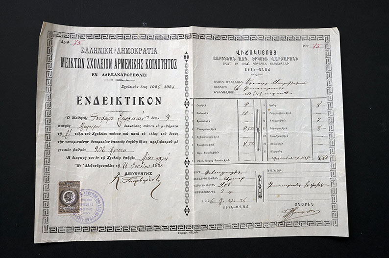 ­Տաս­նա­մեակ­ներ շա­րու­նակ ե­կե­ղե­ցիին կող­քին գոր­ծած է հայ­կա­կան տե­ղա­կան վար­ժա­րա­նը՝ «­Տա­րօ­նեան»ը, ի յի­շա­տակ մշե­ցի­նե­րու ծծնդա­վայր ­Տա­րօ­նի շրջա­նին։ ­Լու­սին լաւ կը յի­շէ ի­րենց ըն­տա­նի­քին մէջ լսո­ւող Մ­շոյ բար­բա­ռով խօս­քեր. «­Չըմ գի­նա» (չեմ գի­տեր), չըմ ու­զի (չեմ ու­զեր)։ Ա­լեք­սանդ­րու­պո­լի­սը մեր ա­ռա­ջին հանգրո­ւանն էր։ ­Յա­ջորդ քա­նի մը օ­րե­րուն մեր խում­բը պի­տի այ­ցե­լէր Ք­սան­թի, Օ­րես­թիա­տա, ­Տի­տի­մօ­թի­քօ, ­Գո­մո­թի­նի. բո­լոր վայ­րե­րուն մէջ ալ պի­տի հան­դի­պէինք հայ ըն­տա­նիք­նե­րու եւ հար­ցազրոյց­ներ պի­տի կա­տա­րէինք հե­տեր­նին։