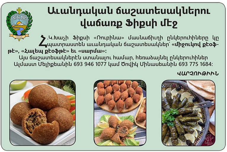 ԳԼԽԱՒՈՐ ԷՋ ԳԱՂՈՒԹԱՅԻՆ Յայտարարութիւններ Աւանդական ճաշատեսակներու վաճառք Ֆիքսի մէջ ԳԱՂՈՒԹԱՅԻՆՅայտարարութիւններ Աւանդական ճաշատեսակներու վաճառք Ֆիքսի մէջ 18 Նոյեմբեր 2025 3 0 ՅԱՐԱԿԻՑ ՅՕԴՈՒԱԾՆԵՐԱՒԵԼԻ ՇԱՏ ՀԵՂԻՆԱԿԻ Յայտարարութիւններ Պազար Գոքինիոյ մէջ Յայտարարութիւններ Համազգայինի Յունաստանի 27-րդ Ներկայացուցչական Ժողով Յայտարարութիւններ Հ.Մ.Ը.Մ.ի Գոքիիոյ մասնաճիւղի անդամական Ընդհանուր ժողով - Advertisement -Վերջին գրառումներ 200 երիտասարդներ եւ պատանիներ պանծացուցին հայկական ժողովրդային պարերը 14 Նոյեմբեր 2025 Առաջնորդ Սրբազան հօր այցելութիւնը Թեսաղոնիկէ եւ Սերրես Մասնակցութիւն յունաց ազգային տօնին 14 Նոյեմբեր 2025 Հայ Աւետարանական եկեղեցւոյ տարեկան պազարը 14 Նոյեմբեր 2025 Հայ աշակերտներու փայլուն յաջողութիւնը 14 Նոյեմբեր 2025 Հաղորդագրութիւն 7 Նոյեմբեր 2025