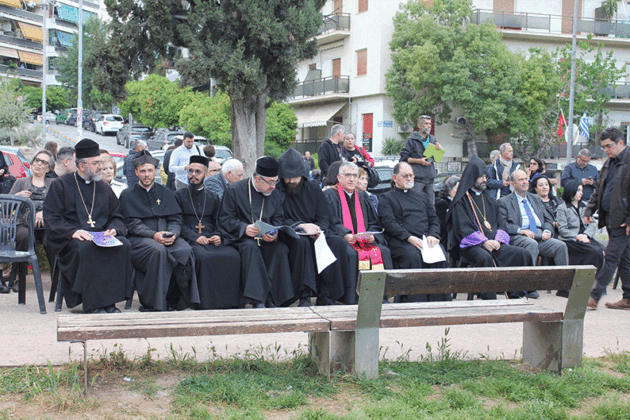 Հայկական կողմէն իրենց ներկայութեամբ ելոյթը պատուեցին թեմակալ Առաջնորդ Սահակ եպս. Եմիշեան, Հայ կաթողիկէ առաջնորդ Միքայէլ վրդ. Պասալէ, Հայ աւետարանական եկեղեցւոյ հովիւ վեր. Վիգէն Չոլաքեան, հոգեւոր դասը, Հ.Հ. դեսպանութեան ներկայացուցիչ հիւպատոս Լիանա Մարութեան, Ազգային վարչութիւնը, Հ.Յ.Դ. Յունաստանի Կեդր. կոմիտէն, Հ.Կ.Խաչի, Հ.Մ.Ը.Մ.-ի եւ Համազգայինի ներկայացուցիչները, վարժարաններու տնօրէնները եւ ուսուցիչները, երիտասարդական ու պատանեկան սերունդը եւ բազմաթիւ հայրենակիցներ։ Պատուոյ դիրք գրաւած էր Հ.Մ.Ը.Մ.-ի սկաուտական խումբերու յատկանշական միաւոր մը, Եռագոյն եւ յունական դրօշակներով։