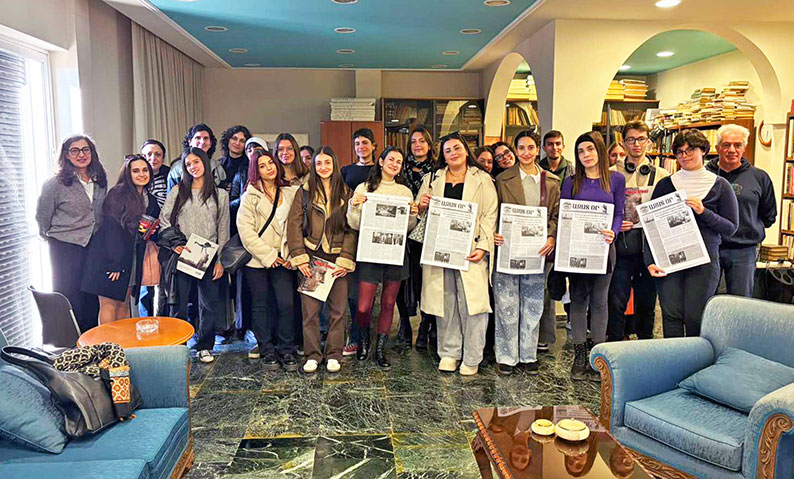 20 ու­սա­նող­նե­րէ բաղ­կա­ցած խում­բը, ու­ղեկ­ցու­թեամբ ի­րենց դա­սա­խօս Է­լէ­նի ­Փա­փու­լիի, ­Հինգ­շաբ­թի, 18 ­Դեկ­տեմ­բեր 2025-ի ա­ռա­ւօ­տուն, այ­ցե­լե­ցին «Ա­զատ Օր»-ի խմբագ­րա­տու­նը եւ դի­մա­ւո­րո­ւե­ցան թեր­թիս պաշ­տօ­նէու­թեան կող­մէ։