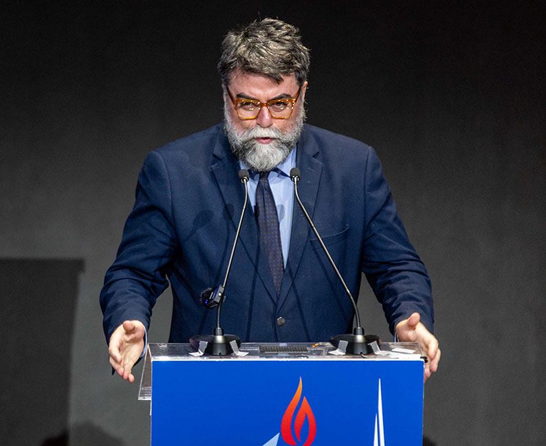 Այսօր մենք նաեւ կը յարգենք այս ցեղային մաքրագործման ամենէն մեծ զոհերէն մէկը՝ հայ ժողովուրդը։ Երկար պատմութիւն ունեցող ժողովուրդ մը՝ հոգեւոր եւ մշակութային հարուստ ընթացքով։ Ժողովուրդ մը, որ ընդունեց քրիստոնէութիւնը որպէս պետական կրօն, իր ինքնուրոյն լեզուով — որ քիչ առաջ լսեցինք — իր այբուբենով, ամուր եւ նշանակալից ինքնութեամբ։ Ժողովուրդ մը, որ մեզի՝ յոյներուս հետ, կողք կողքի ընթացաւ։