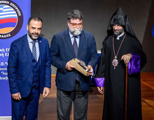 Յունաստանի պաշտպանութեան նախարար եւ հայ ժողովուրդի անվերապահ բարեկամ Նիքոս Տենտիասի աննախընթաց պաշտօնական ներկայութեամբ եւ զօրակցական կուռ խօսքով յատկանշուեցաւ Աթէնքի մէջ իրագործուած Հայոց ցեղասպանութեան 111-ամեակի ոգեկոչական մեծաշուք նշումը, Աթէնքի երաժշտանոցի շքեղ սրահին մէջ։