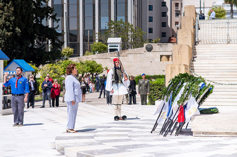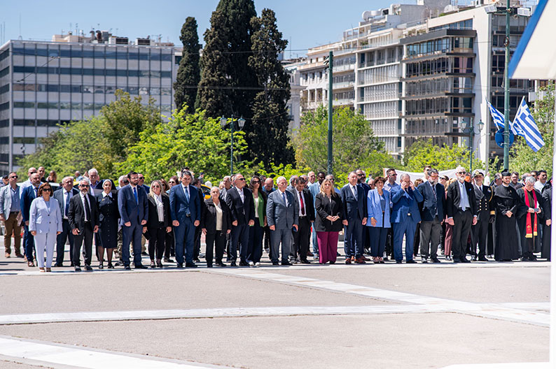 Անծանօթ Զինուորի յուշադամբանին առջեւ արդէն պատուի կանգնած էր Յունաստանի զինեալ ուժերու խառն ջոկատ մը, զինուորական նուագախումբի ներկայութեամբ։ Հրապարակը լեցուն էր յոյն եւ օտար ներկաներով, որոնք միախառնուեցան հայ բազմութեան հետ եւ ականատես եղան ոգեկոչական յուզիչ արարողութեան։