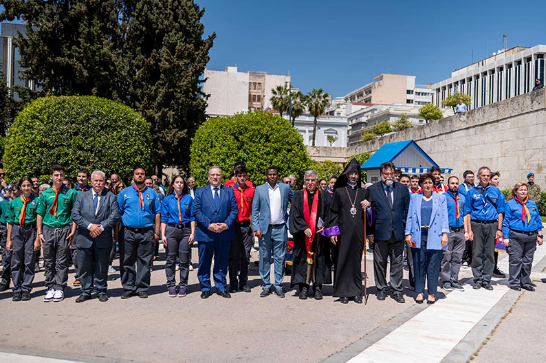 Հայկական կողմէն, հիւրերու շարքը կը գլխաւորէր Յունաստանի հայոց թեմակալ Առաջնորդ Տ. Սահակ եպս. Եմիշեան. անոր կողքին կանգնած էին Հայ կաթողիկէ եկեղեցւոյ Միքայէլ վրդ. Պասալէ, Հայ աւետարանական եկեղեցւոյ վերապատուելի Վիգէն Չոլաքեան, կրօնական դասը, Ազգային վարչութեան ատենապետ Նազար Աւագեան, Հ.Յ.Դ. Կեդրոնական Կոմիտէի ներկայացուցիչ ընկ. Հռիփսիմէ Յարութիւնեան, Հ.Կ.Խաչի, Համազգայինի եւ Հ.Մ.Ը.Մ-ի ներկայացուցիչները։ Նաեւ, իր ներկայութեամբ ոգեկոչական հաւաքը պատուեց Յունաստանի մէջ Հ.Հ. ռազմական կցորդ գնդապետ Արմէն Միրզաբէկեան։
