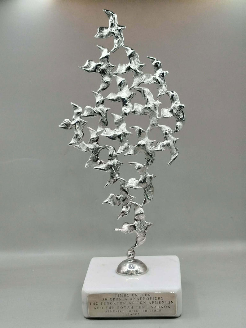 Ելոյթի աւարտէն առաջ յարգելու համար Յունաստանի խորհրդարանի պատմական որոշումի 30-ամեակը, Յունահայոց թեմակալ առաջնորդը եւ Հայ դատի յանձնախումբի ատենապետ ընկ. Յարութիւն Սպարթալեան յիշատակի քանդակ մը նուիրեցին խորհրդարանի ներկայացուցիչ երեսփոխան Վ. Իքոնոմուին: Յուշանուէրը պատրաստուած էր արհեստագէտ ընկ. Յովիկ Գասապեանի ձեռքով: