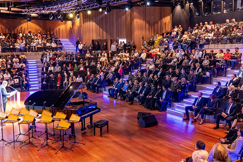 Նուագախումբը հնչեցուց Հայաստանի եւ Յունաստանի ոգերգները, մինչ ներկաները միաբերան երգեցին, ստեղծելով յուզումի եւ վերացման պահեր, յարգելով յիշատակը անոնց, որոնք ինկան հայութեան դէմ գործուած ամենամեծ ոճիրի օրերուն։