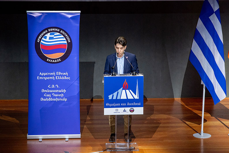 Բեմ հրաւիրուեցաւ Ատիկէի մարզպետի ներկայացուցիչ Եորղոս Վլախոս, որ իր ուղերձին մէջ անդրադարձաւ Հայոց ցեղասպանութեան արդարութեան վերականգնումին մասին։ Յաջորդաբար, խօսք ուղղեց Յունաստանի խորհրդարանի ներկայացուցիչ Վասիլիս Իքոնոմու, որ դրուատեց հայ ժողովուրդը ու անոր գոյատեւելու կամքը, միաժամանակ լուսարձակի տակ առաւ միջխորհրդարանական գործակցութիւնը։