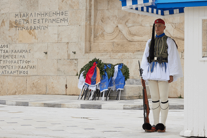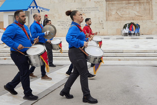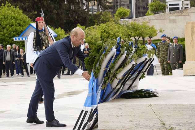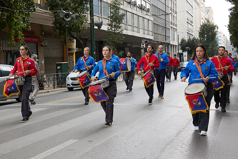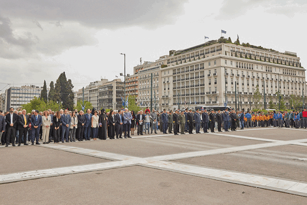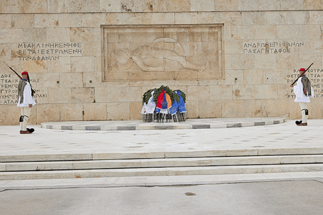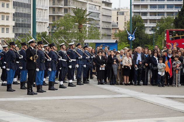 Ժողովրդային երթը հասաւ Յունաստանի խորհրդարանին առջեւ, ուր կը սպասէին Յունաստանի Զինեալ ուժերու խառն ջոկատ մը իր պաշտօնական համազգեստով, առաւել օդային ուժերու մեծ փողերախումբը։ Անծանօթ Զինուորի յուշադամբանին շուրջ բոլորուած էին մեծ թիւով օտարներ, որոնք յարգանքով հետեւեցան ելոյթին։