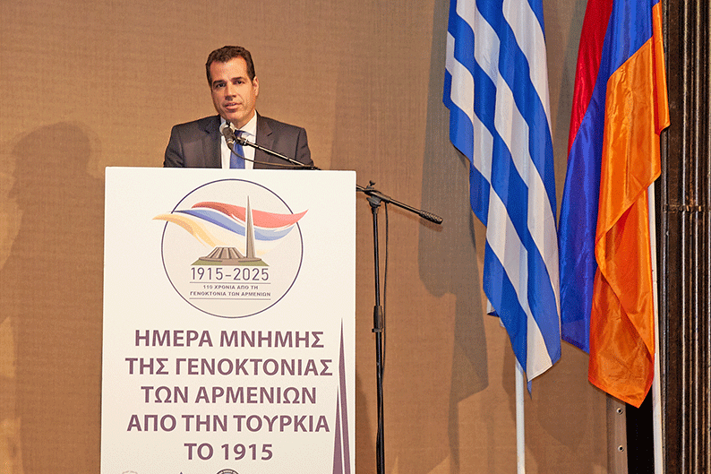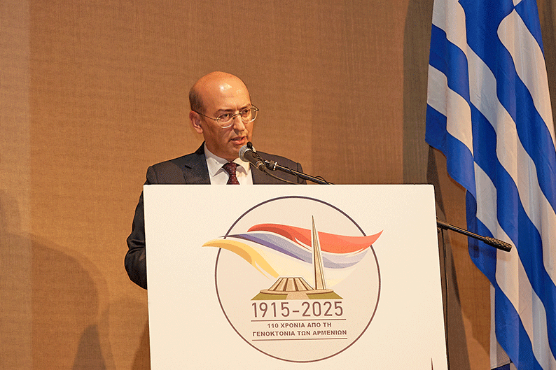 Յունաստանի մէջ Հ.Հ. արտակարգ եւ լիազօր դեսպան Տիգրան Մկրտչեան իր ուղերձին մէջ անդրադարձ կատարեց Հայոց ցեղասպանութեան իրաւական ծալքերուն, ժխտողականութեան դէմ պայքարին եւ յատուկ մատնանշում ըրաւ Յունաստանի կողմէ Ցեղասպանութեան ճանաչման, ինչպէս նաեւ դրուատեց Յունաստանի հետ բարեկամական խոր կապերու առկայութիւնն ու զարգացումը, որպէս բախտակից ժողովուրդ։