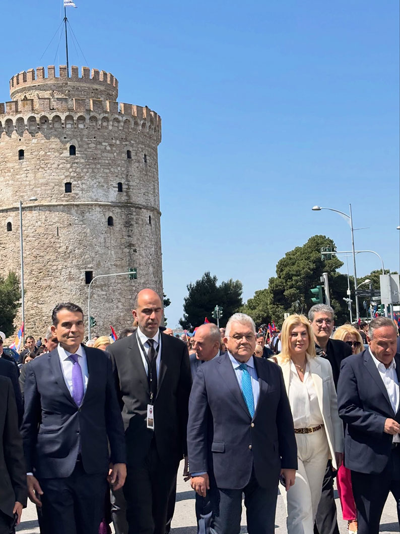 Այ­նու­հե­տեւ, քա­ղա­քա­կան բարձ­րաս­տի­ճան պաշ­տօ­նեա­նե­րը եւ ­Թե­սա­ղո­նի­կէի ­Թա­ղա­յին խոր­հուր­դի ա­տե­նա­պետ Ք­րիս ­Ղա­լի­լէաս ի­րենց խօս­քե­րը ուղ­ղե­ցին ներ­կա­նե­րուն՝ ընդգ­ծե­լով յի­շո­ղու­թեան, ճա­նաչ­ման եւ հա­մա­մարդ­կա­յին ար­ժէք­նե­րու պահ­պան­ման նշա­նա­կու­թիւ­նը։
