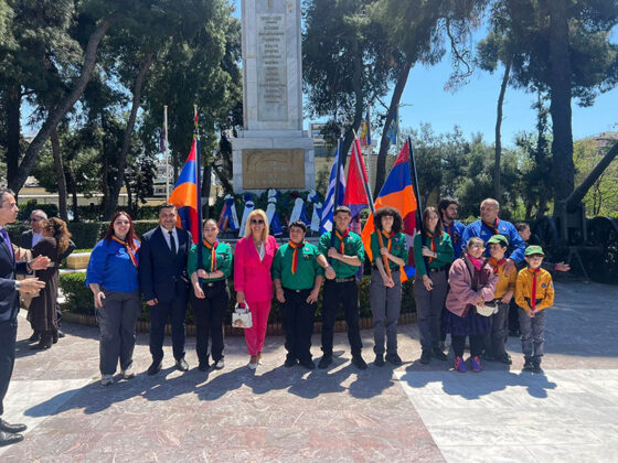 Ե­լոյ­թի ա­ւար­տին, բո­լոր ներ­կա­նե­րը միաս­նա­բար քայ­լար­շաւ կա­տա­րե­ցին դէ­պի «­Հե­րոս­նե­րու ­Յու­շար­ձան ΑΣΔΗΜ», ուր քա­ղա­քա­կան բարձ­րաս­տի­ճան պաշ­տօ­նեա­նե­րը եւ ներ­կա­յա­ցու­ցիչ­նե­րը, առ ի յար­գանք, դափ­նեպսակ­ներ զե­տե­ղե­ցին՝ յի­շա­տա­կե­լով ­Հա­յոց ցե­ղաս­պա­նու­թեան ան­մեղ զո­հե­րը, մինչ 3 -րդ ­զօ­րա­բա­նա­կի նո­ւա­գա­խում­բը հնչե­ցուց զոյգ ո­գերգ­նե­րը։