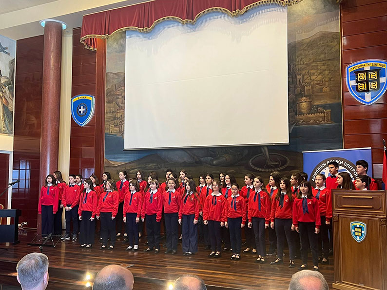 ­Դա­սա­խօ­սու­թե­նէն ետք կա­տա­րո­ւե­ցաւ ե­րաժշ­տա­կան բա­ժին, մեկ­նա­բա­նու­թեամբ ­Թե­սա­ղո­նի­կէի ե­րաժշ­տա­կան միու­թեան փոք­րիկ­նե­րու երգ­չա­խում­բին, որ յու­զիչ մթնո­լորտ ստեղ­ծեց եւ ա­ւե­լի խո­րա­ցուց օ­րո­ւան ի­մաս­տը։